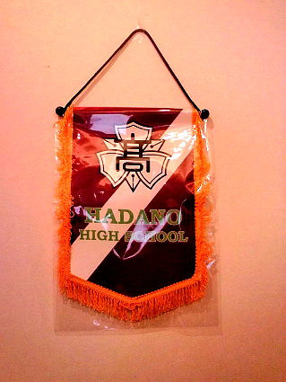 4.副校長よりペナントの紹介 ・・・ 美術部の生徒の原画をもとに作成